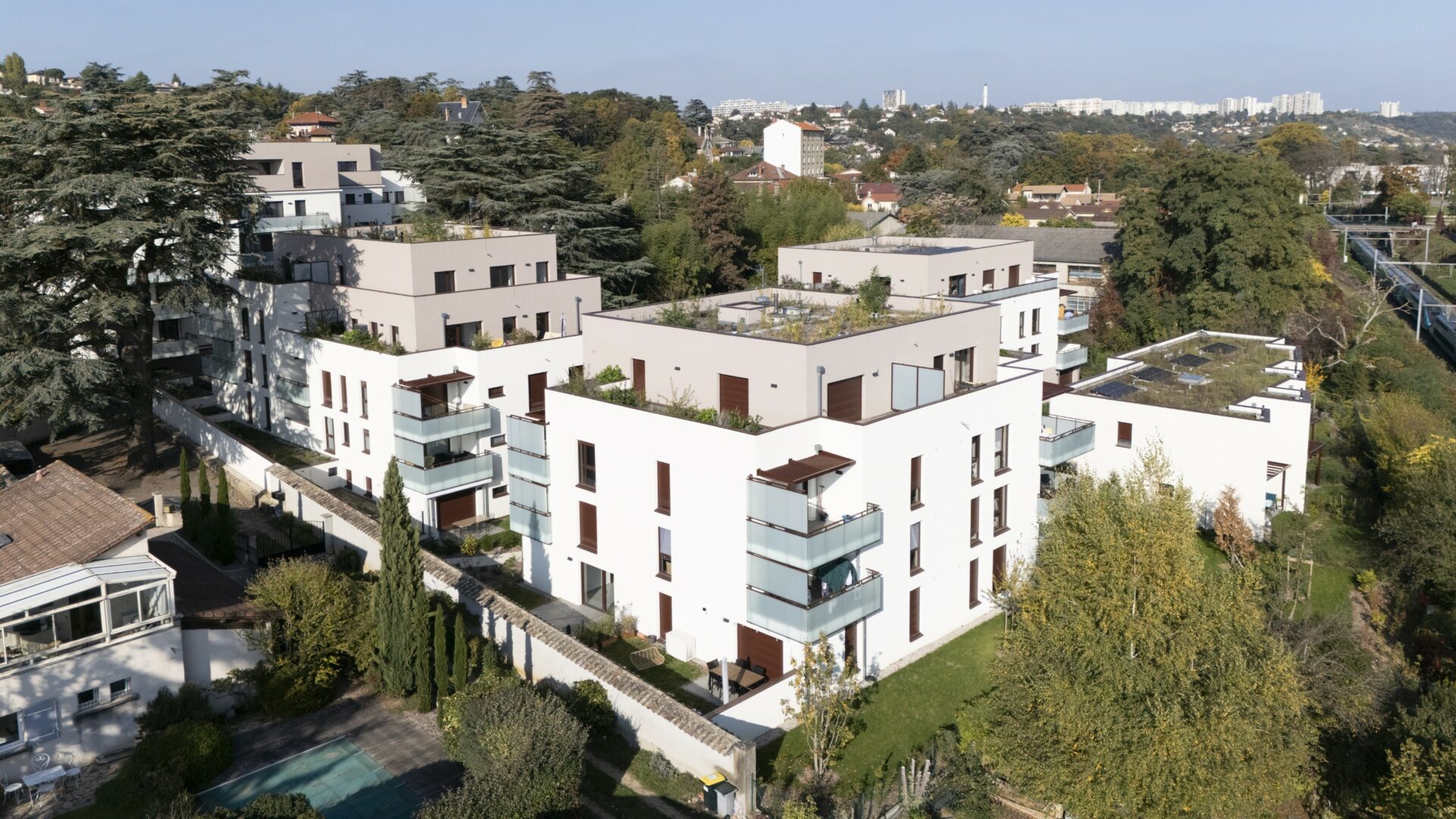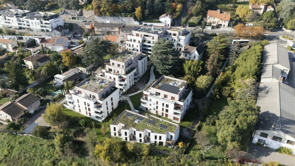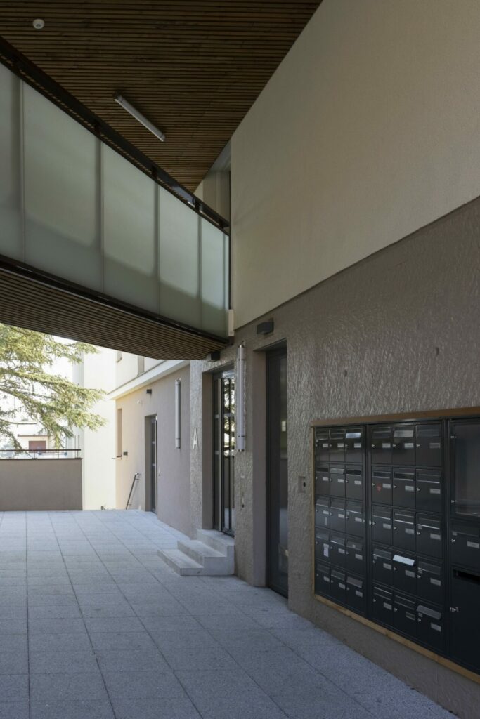 Spécificités techniques : E3C1 Effinergie (sans label), le NF Habitat HQE et le Référentiel Habitat Durable du Grand Lyon (version 2016), Vmc Double Flux sur le bâtiment A, Conservation d’un cèdre centenaire