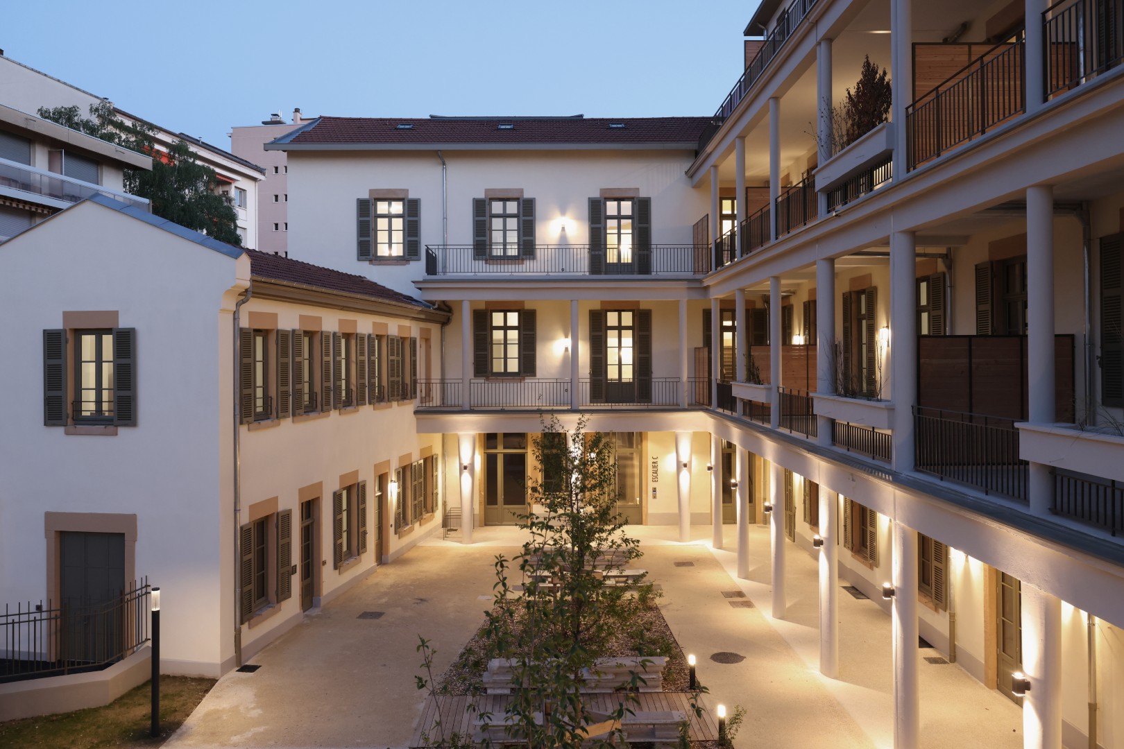 Le projet s’est attaché à remettre le bâtiment en valeur dans sa cohérence historique : volumétrie, harmonisation des percements et des menuiseries entièrement remises à neuf en bois, colorimétrie, éclairage architectural …