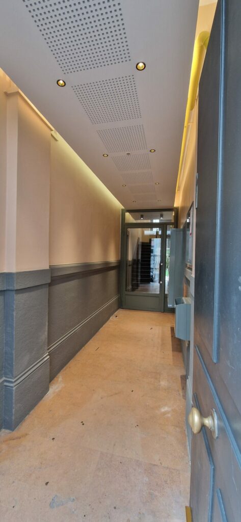 Les enveloppes des bâtiments n’ont pas été oubliées et participent fortement à la réhabilitation énergétique, grâce à la révision des couvertures, l’isolation thermique des combles et du plafond des caves. L’isolation thermique extérieure et/ou intérieure des façades mise en place afin de conserver et/ou restituer au mieux les éléments de modénature des façades qui font la richesse du patrimoine Mangini.